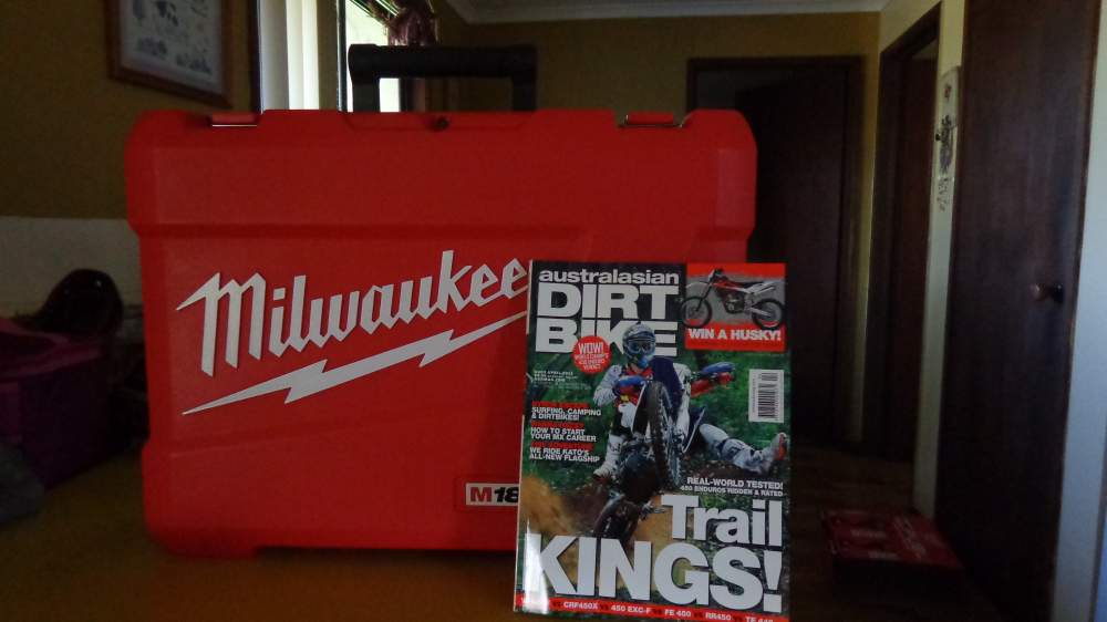 Nice work! So Bob, what exactly are the tools and what are you going to use them for?  Apparently, you can get an egg beater attachment for the drill. Just what Bob needs to make those fluffy soufflés!  What attachments can you get for the impact gun!!!  Popped into my local Tools R Us and found this Attachment. " I can Work with That " Looks like she can handle a big Bit !!  Or you can even buy one of these: Kink Industries Rotary hammer Drill Adapter, for soft material like Foam drilling Applications.  I like the first attachment, I will try and pick one up tomorrow night to see how it performs! If it's any good I'll post a ride report!