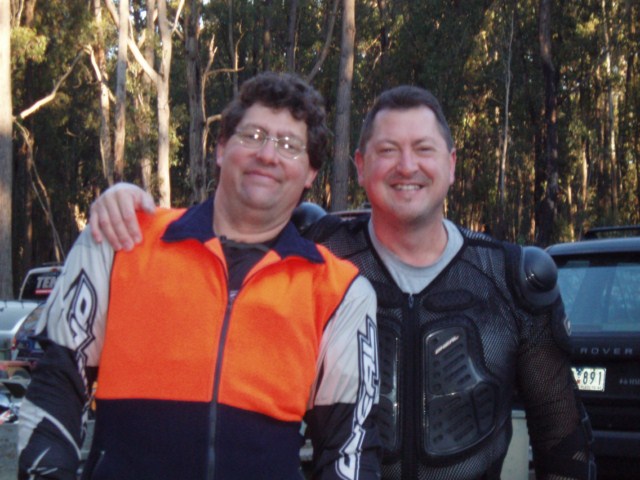 As dawn was breaking & birds were coming into song & while every other spring chicken AMTRA member was still in bed, me & Mr Frogman were already on our way to get to Neerim South for the first & inaugral 'AMTRA Old Fart's Ride'. We were the first old farts to arrive just a bit after 7am & following in shortly after by another anxious old fart Mr Rossi in his boots. Got our shizen together & did some practice laps of the carpark, while all the other old boys rolled up. I should have been a bit concerned, when I signed the attendance register & got #13...After a quick introductory speach by the guru, it was off & racing out the back track, which, in Will's own words, "Well head out the back, onto possibly the worst track for the morning, to warms you's all up"...Warm us up it did